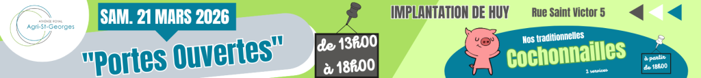Participation au devoir de mémoire – Commémoration du 11 novembre Ce mardi 12 novembre, l’Athénée Royal Agri Saint-Georges a pris part à la cérémonie communale organisée à l’occasion de la commémoration du 11 novembre. La date a été adaptée afin de permettre aux établissements scolaires de participer pleinement à ce moment de recueillement partagé avec… Lire la suite : Commémoration du 11 novembre - 🍫🎄 Soutenez le voyage scolaire des pemières secondaires de Saint-Georges à La Panne ! 🎄🍫