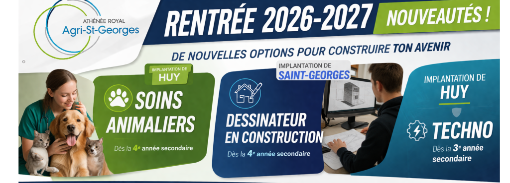 🎶 Blind-Test Rhéto 2025 🎶Tu aimes la musique, l’ambiance et les défis entre amis ?Rejoins-nous le vendredi 5 décembre 2025 à 20h à l’Athénée Royal Agri Saint-Georges (Rue Éloi Fouarge, 31 – Saint-Georges-sur-Meuse) pour une soirée blind-test inoubliable ! 🌟 👉 Équipes de 4 à 8 joueurs👉 PAF : 5 € par joueur👉 Assiette apéritive… Lire la suite : Blind-Test Rhéto - Sortie théâtre : Crime et ChâtimentDans le cadre du cours de français, les élèves de 6TC et de 5PAF se rendront au théâtre de Liège le jeudi 6 novembre 2025 pour assister à la représentation du spectacle Crime etChâtiment, dont vous trouverez une brève présentation ci-dessous. Crime et Châtiment Chef-d’oeuvre de la littérature mondiale, écrit en 1866 par Fiodor Dostoïevski,… Lire la suite : Sortie théâtre : Crime et Châtiment