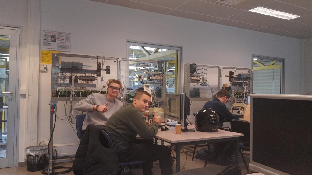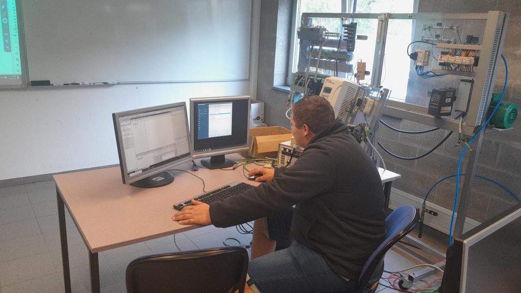 Ce vendredi 14 novembre, nos élèves de 6e technicien en maintenance industrielle poursuivent leur formation intensive au CTA Technifutur. Cette immersion professionnelle leur permet de travailler sur deux technologies majeures de l’industrie moderne : les automates programmables industriels Siemens S7-1200 et les variateurs de fréquences Siemens Sinamics.